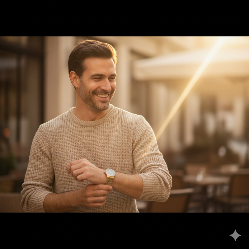 The Celestial is a refined chronograph with a twist – inspired by the wonders of the night sky. Designed for men who appreciate a touch of the extraordinary, its luminous star-dial and moonphase function lend both character and clarity to the modern wrist. From formal events to weekend retreats, it strikes a perfect balance of elegance and presence.